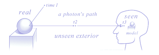 You never perceive the external world directly, you only perceive second-hand "messages" sent via photons and sound waves that have already struck your sensory apparatus and sent information about the external world into your brain where it was processed into the three-dimensional model of the real world that you see. The things that you perceive as being the genuine articles "out there" are actually simulations of them inside your brain.