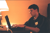 “What about this?” Jeff says while typing something on his laptop computer.’ He quickly erases it and starts something else.’ Jeff massages the text, working it like a potter with clay to get it into the form of a sound argument without losing the anecdotal flourishes that audiences need and to which they respond.’ After the long struggle of grappling with words he looks at the time.’ 1:30 a.m. “Not bad at all,” Jeff says triumphantly.’ “Let me just throw this on a floppy disk and then print it up in the hotel’s computer room.”‘ Jeff rummages through his bag.’ Looking concerned he then pulls things from out of his suitcase.’ “Oh no!” he exclaims while looking around the room. “I’ve left my floppy disk drive at home!’ Without it, I can’t print up my notes.”‘ And without the printed notes, Jeff would be forced to ad lib from memory using his old marked-up notes. Finally, he decides to take the laptop computer itself to the computer room and see what we could do. An hour later, after other options fail, Jeff manages to coax the hotel’s laser printer into printing his debate speech.’ We had to get to the conference early the next morning so that left about three or four hours of sleep.